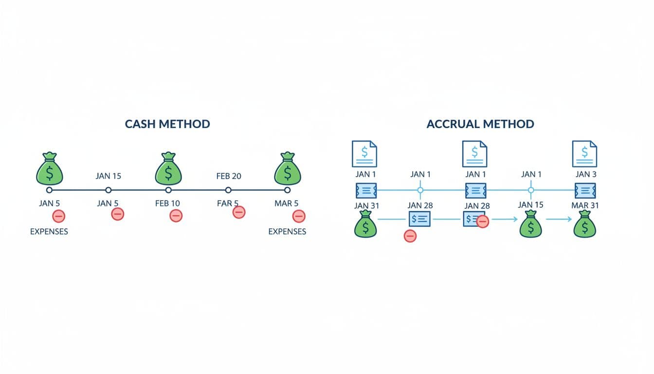Taxes can also shift based on timing. Cash accounting may delay income into the next tax year if payment comes later. Accrual may pull income forward because the work was already earned. Neither method is automatically better for taxes. It depends on your revenue cycle, expenses, inventory, and entity type. The IRS also covers small business recordkeeping and reporting in Publication 334 for small businesses.